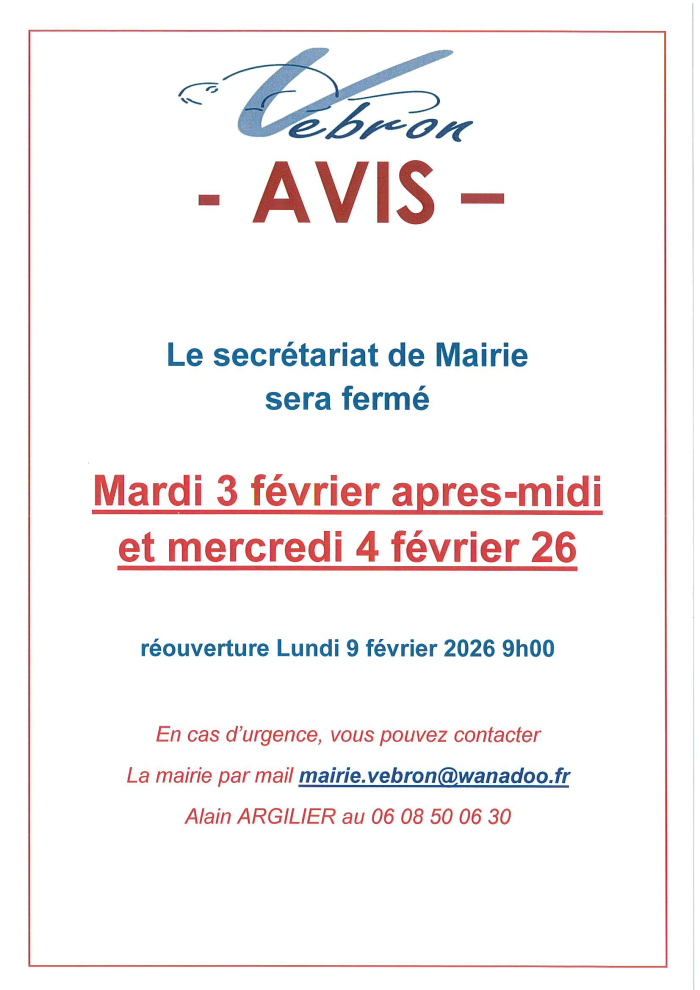 Le secrétariat de Mairie sera fermé