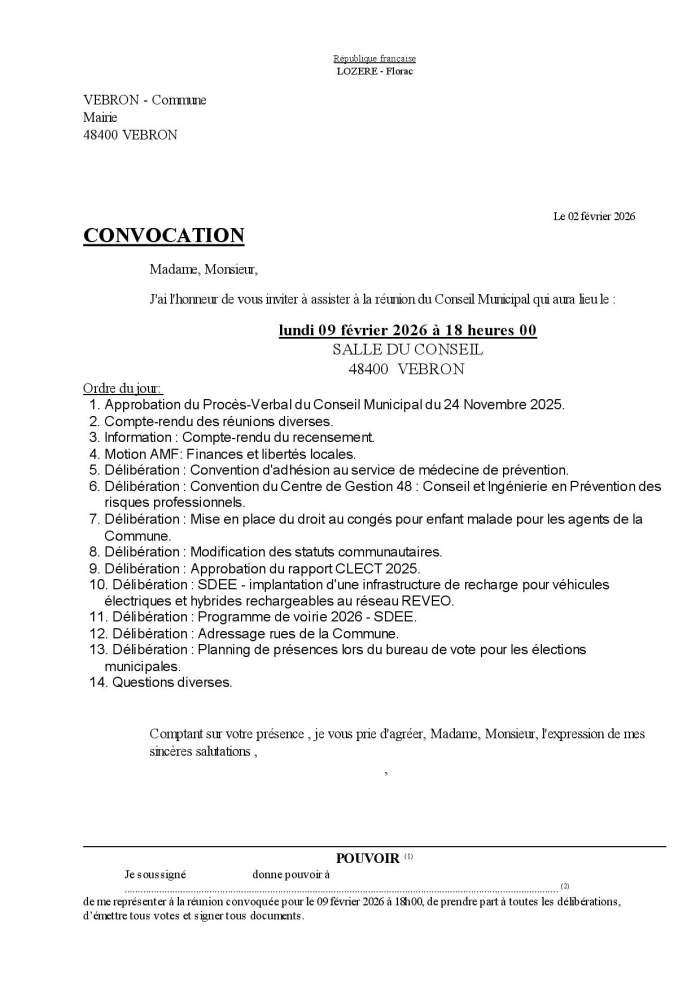 Le Conseil Municipal de Vébron,