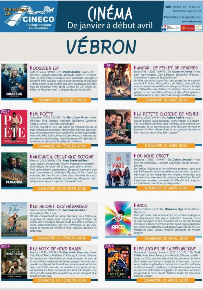 Prochaines projections CINECO à Vébron